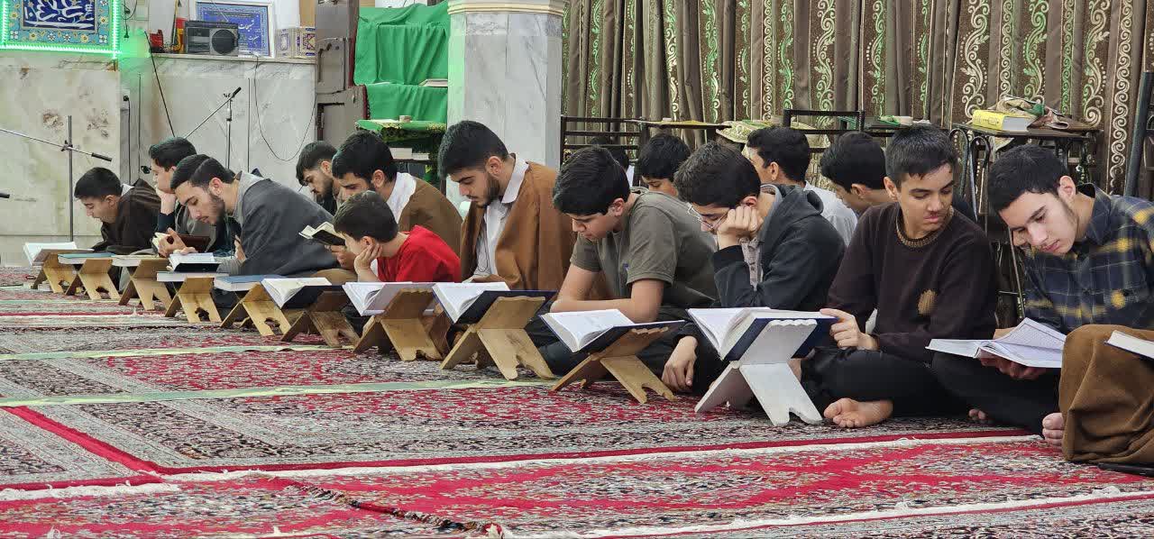 برنامه معنوی اعتکافِ طلاب مدرسه ثامن‌الائمه علیهم‌السلام در مسجد فاطمة‌الزهراء.