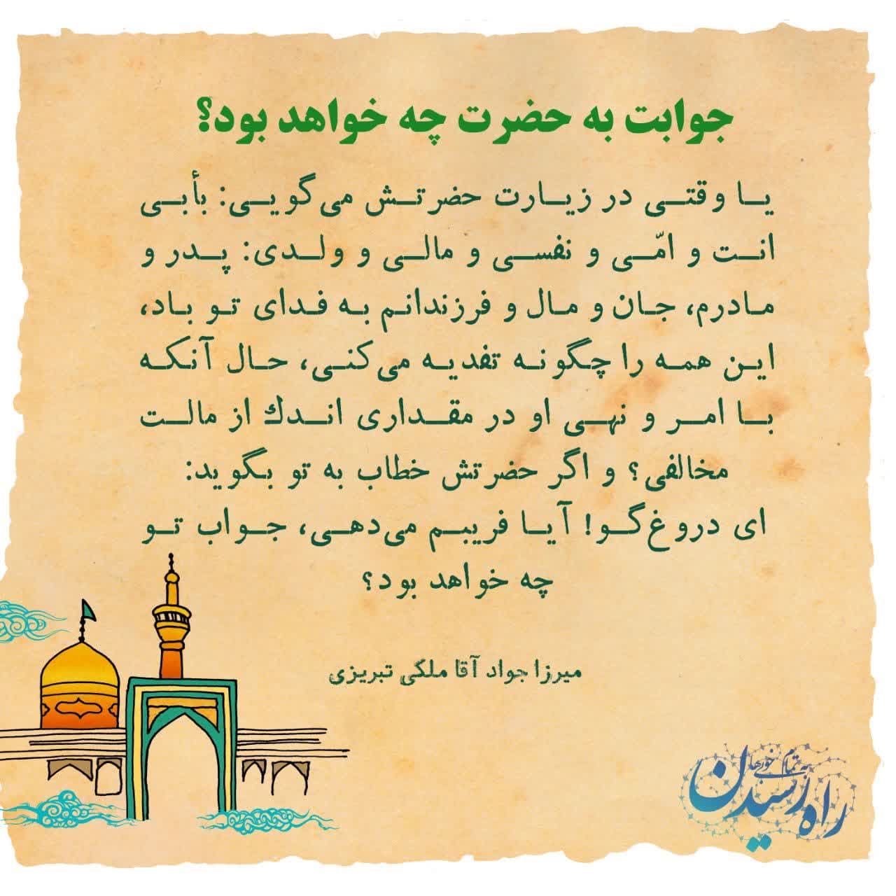 دلهای کسانی که جامانده اند را همراه خودتان ببرید. دیگر افراد مدرسه و خانواده و… را در زیارت شریک کنید.