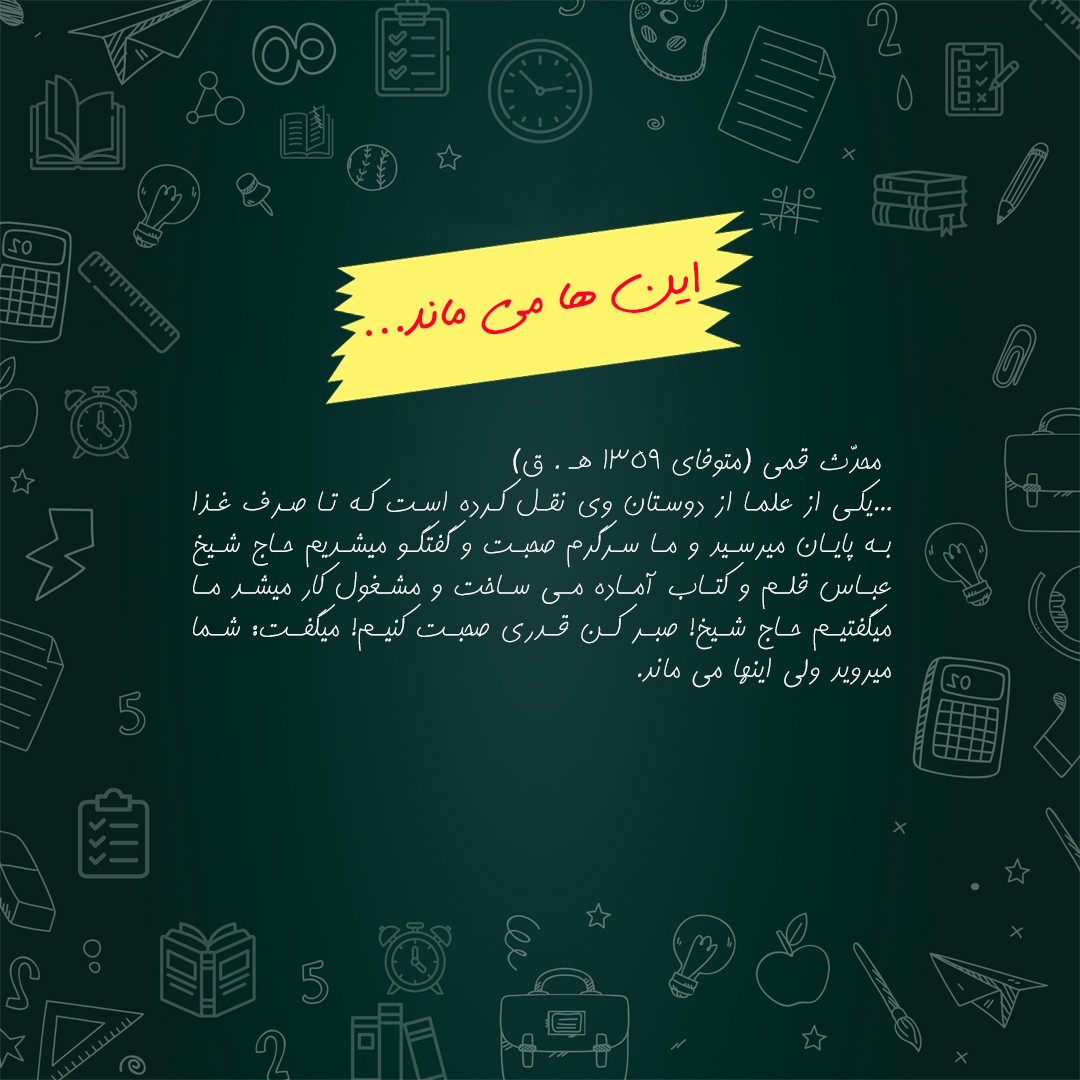 در سیره و بیان ده عالم الهی امام خمینی (ره)، امام_خامنه_ای(حفظه الله) ، استاد_عابدینی، میرزا_جواد_آقا_ملکی(ره)، علامه_طباطبایی(ره)، شیخ محمد بهاری(ره)، آیت_الله_بهجت(ره)، علامه_طهرانی(ره)، آیتالله بهاءالدینی(ره)، حکیم الهی قمشه_ای(ره)